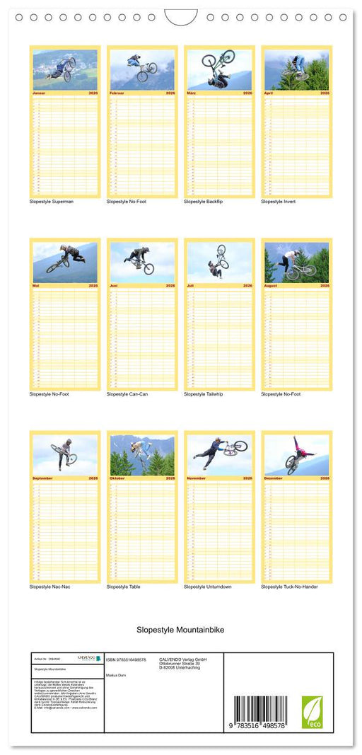 Vollständige Details anzeigenSlopestyle Mountainbike (CALVENDO Familienplaner 2026)