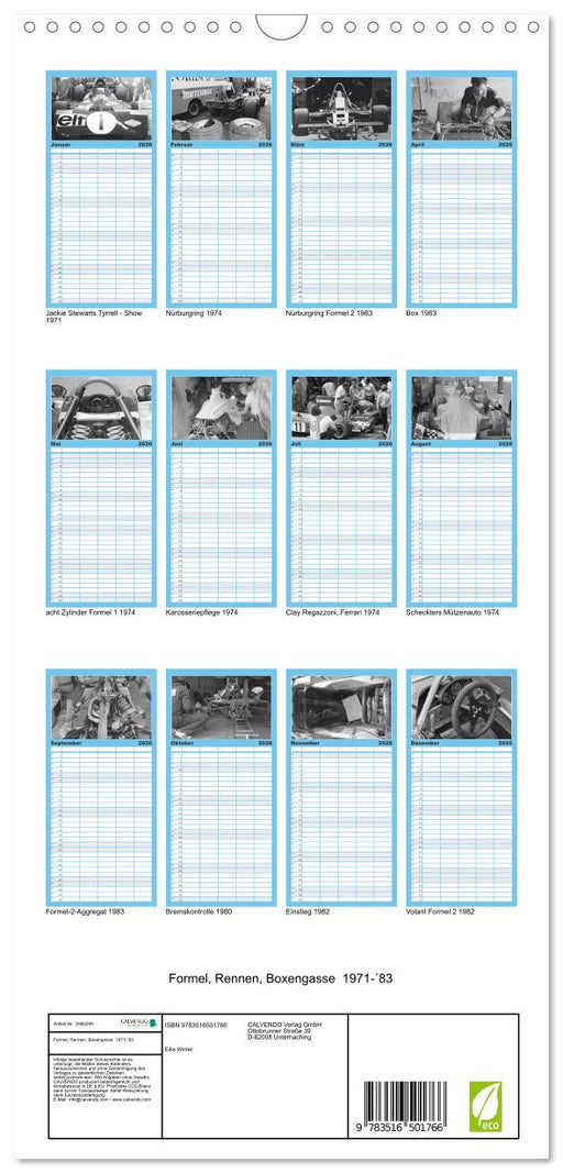 Vollständige Details anzeigenFormel, Rennen, Boxengasse 1971-´83 (CALVENDO Familienplaner 2026)