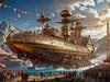 Der retro-futuristische Ansatz von Steampunk verleiht der Fantasie mächtige Flügel. Auf diesen lassen wir uns ins All tragen und bewundern, wie uns die künstliche Intelligenz Szenen aus dem Alltag der erdnahen Raumfahrt erleben lässt, alles natürlich mit Vehikel aus poliertem Messing.