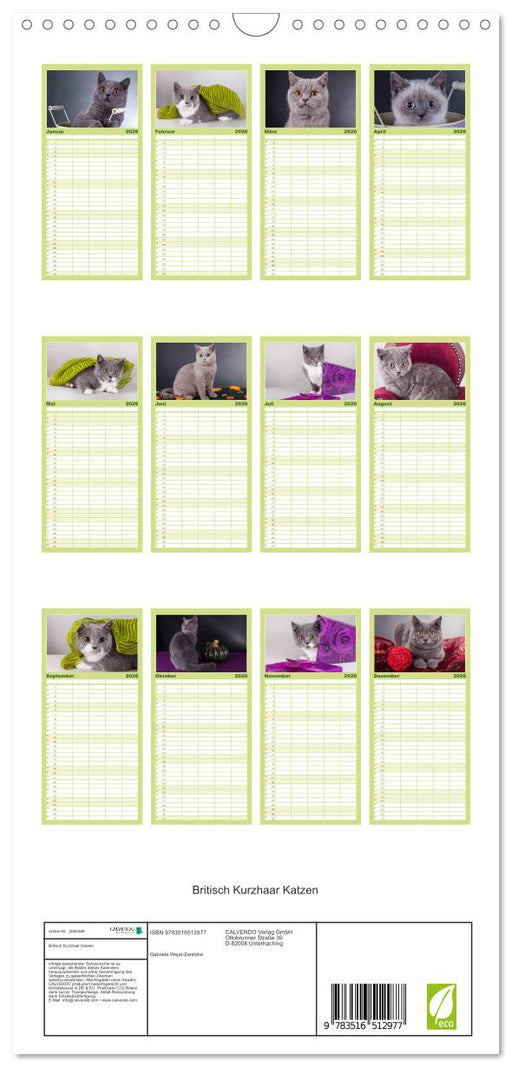 Britisch Kurzhaar Katzen (CALVENDO Familienplaner 2026)