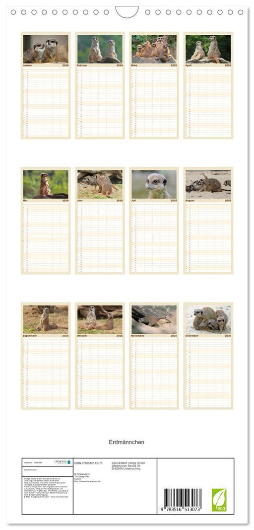 Vollständige Details anzeigenErdmännchen (CALVENDO Familienplaner 2026)