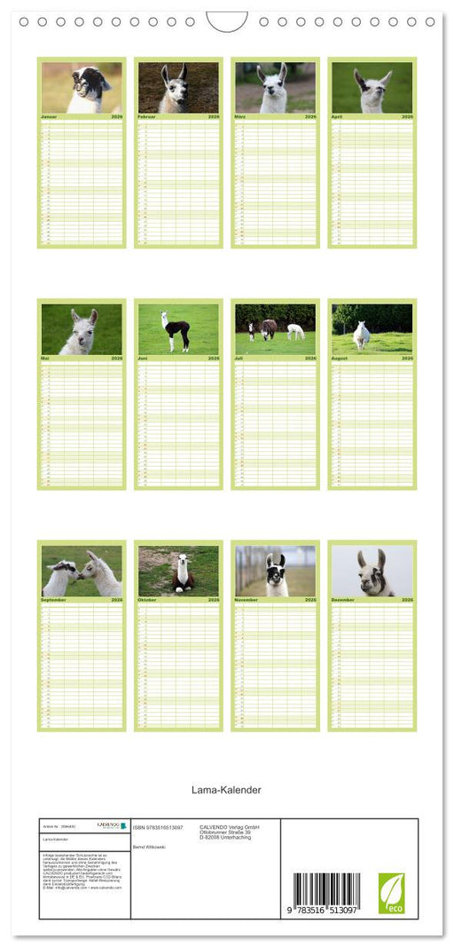 Vollständige Details anzeigenLama-Kalender (CALVENDO Familienplaner 2026)