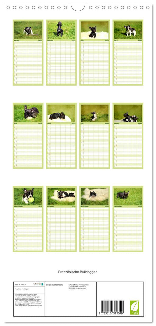 Vollständige Details anzeigenFranzösische Bulldoggen (CALVENDO Familienplaner 2026)