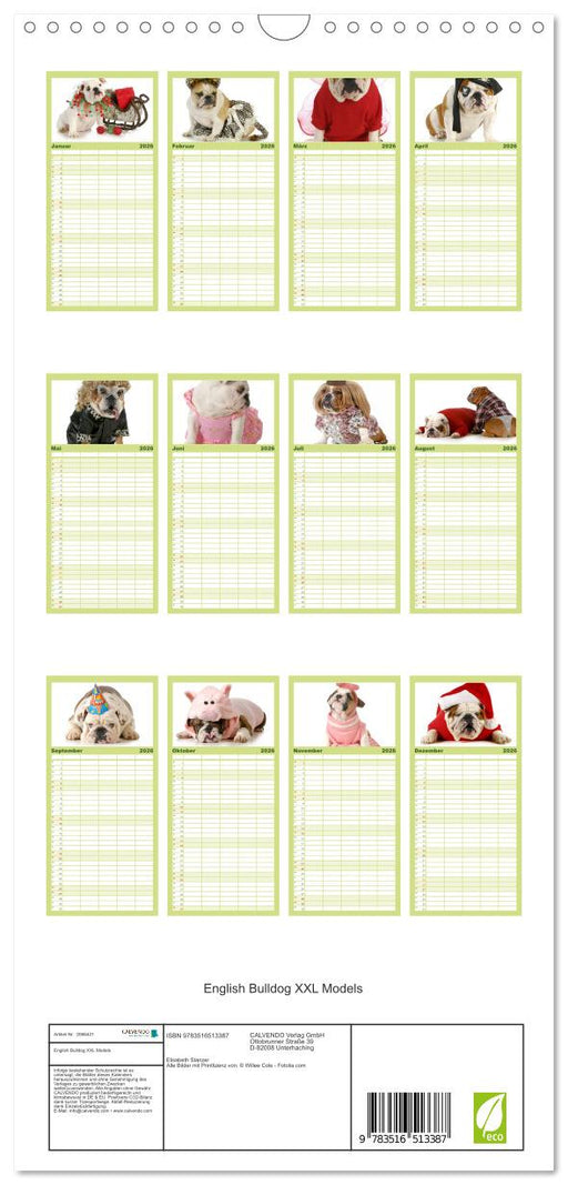 Vollständige Details anzeigenEnglish Bulldog XXL Models (CALVENDO Familienplaner 2026)