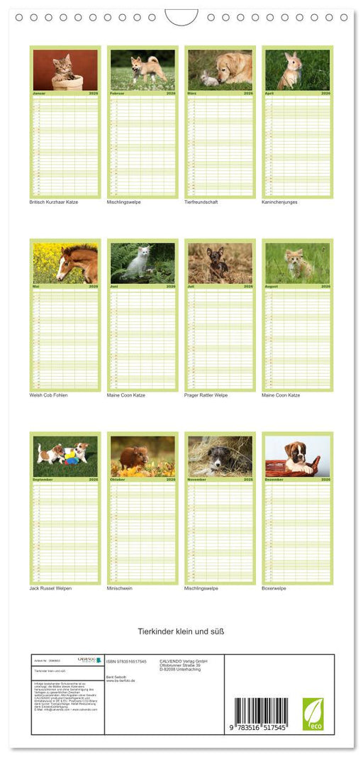 Vollständige Details anzeigenTierkinder klein und süß (CALVENDO Familienplaner 2026)