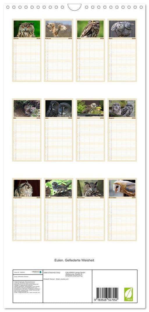 Vollständige Details anzeigenEulen. Gefiederte Weisheit (CALVENDO Familienplaner 2026)
