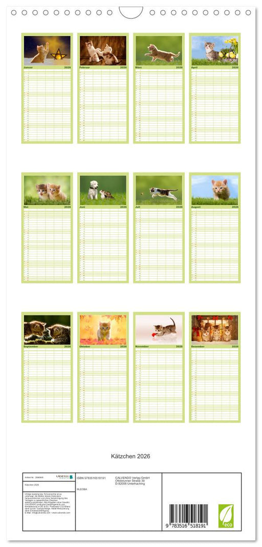 Vollständige Details anzeigenLächelnd durchs Jahr - Katzenkinder -Familienplaner hoch (CALVENDO Familienplaner 2026)