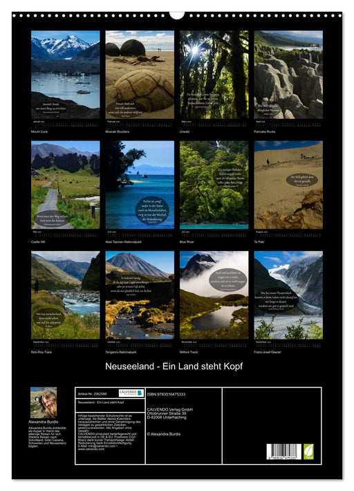 Neuseeland, ein beindruckendes Land, in dem fast jede Klimazone zu finden ist und das auf kleinstem Raum. (Monatskalender, 14 Seiten) "Erwache im ...