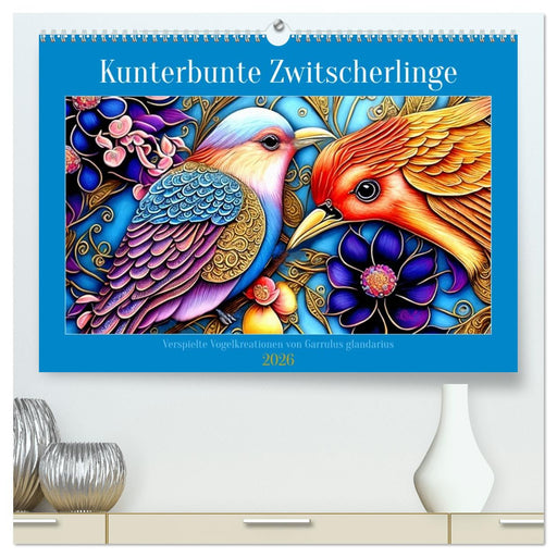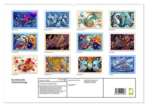 Vollständige Details anzeigenKunterbunte Zwitscherlinge (CALVENDO Premium Wandkalender 2026)
