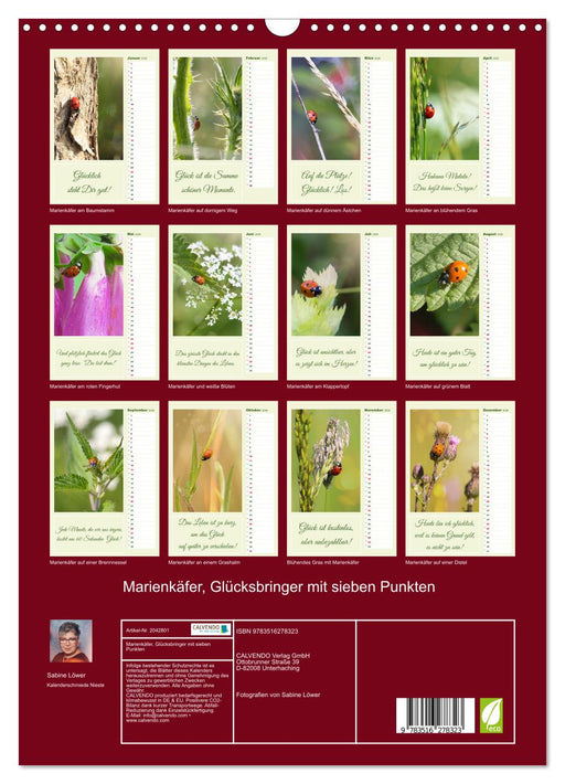 Vollständige Details anzeigenMarienkäfer & Zitate - Sieben Punkte zum Glück (CALVENDO Wandkalender 2026)