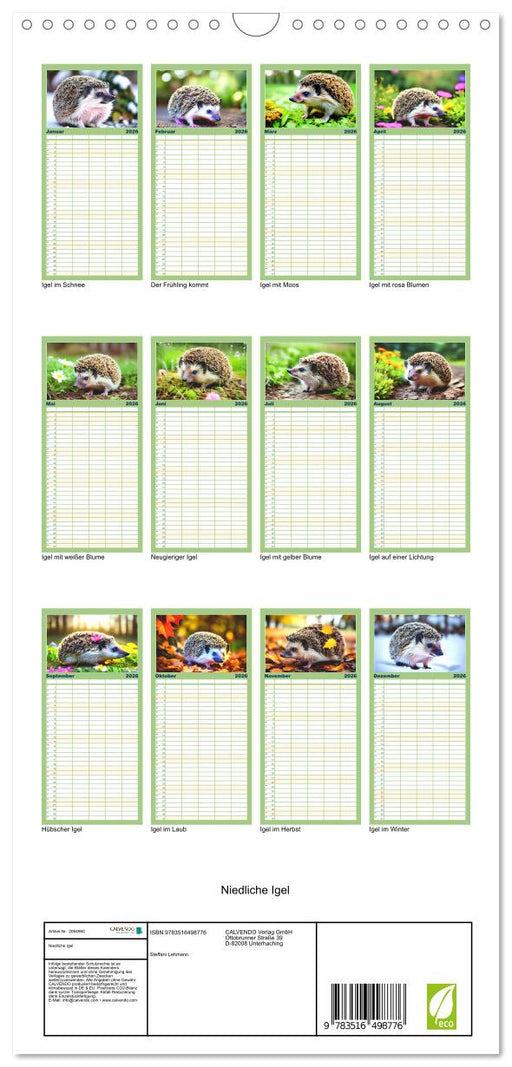Vollständige Details anzeigenNiedliche Igel (CALVENDO Familienplaner 2026)