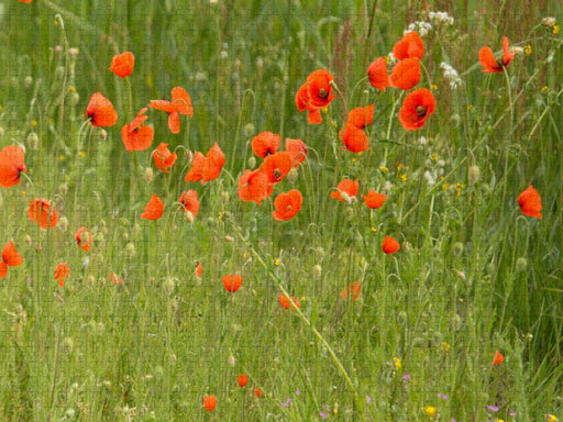 Klatschmohn Texels Wiesen zieren sich im Frühling mit wilden Blumenteppichen, Klatschmohn, Butterblumen, am Rand Ginster und blühenden Büschen und...