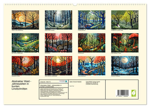Vollständige Details anzeigenAbstrakter Wald - Jahreszeiten in bunten Linolschnitten (CALVENDO Premium Wandkalender 2026)