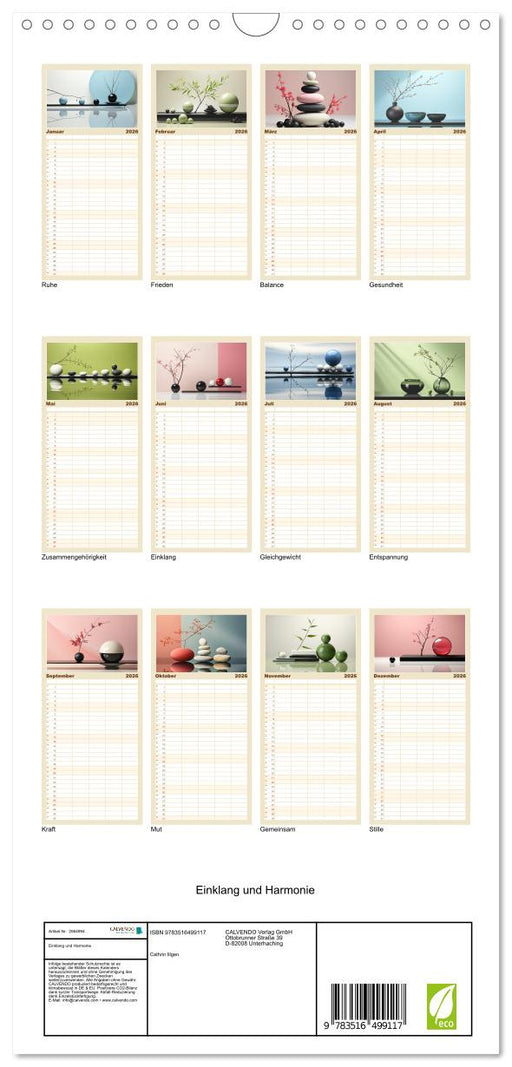 Vollständige Details anzeigenEinklang und Harmonie (CALVENDO Familienplaner 2026)