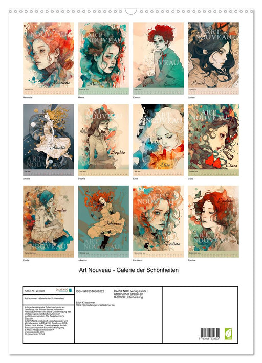 Kunstvoll illustrierte Frauenportraits im faszinierenden Art Nouveau Stil (Monatskalender, 14 Seiten) Willkommen in einer Zeit, in der Kunst und S...
