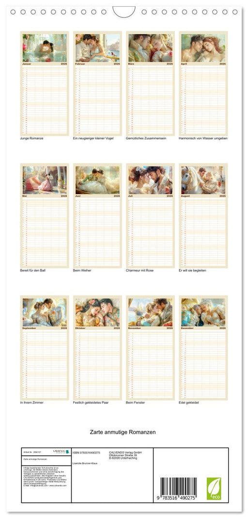 Vollständige Details anzeigenZarte anmutige Romanzen (CALVENDO Familienplaner 2026)