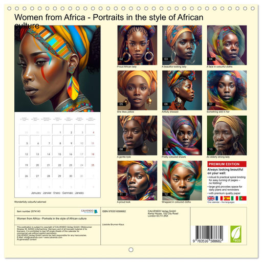 Elegance of African women's portraits (Monthly calendar, 14 pages) African Women Portraits is the name of the fascinating calendar that presents t...