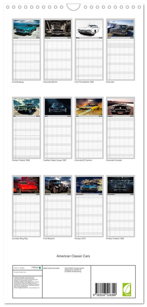 Vollständige Details anzeigenAmerican Classic Cars (CALVENDO Familienplaner 2026)