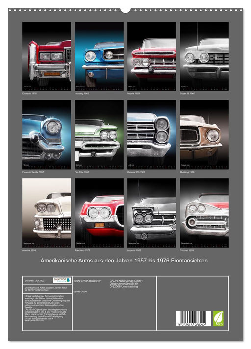Vollständige Details anzeigenAmerikanische Autos aus den Jahren 1957 bis 1976 Frontansichten (CALVENDO Premium Wandkalender 2026)