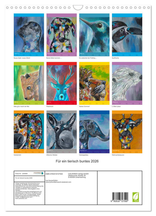 Vollständige Details anzeigenFür ein tierisch buntes 2026 (CALVENDO Wandkalender 2026)