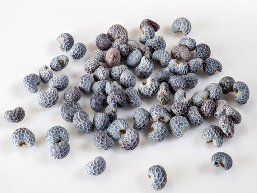 Makroaufnahme von Mohnsamen. Originalgröße etwa 1,5 mm Mohnsamen schmecken nicht nur auf Gebäck, sie sind auch ein Augenschmaus. Ihre Oberfläche z...