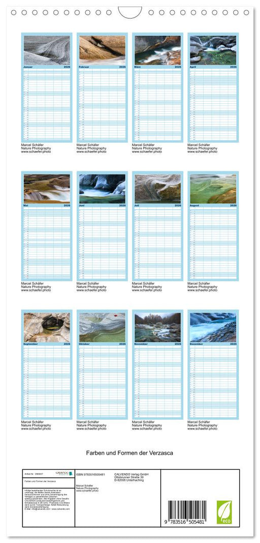 Farben und Formen der Verzasca (CALVENDO Familienplaner 2026)