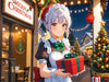 Manga Girl im Maid Outfit feiert Weihnachten mit Geschenk, Anime Flair und festlicher Winteratmosphäre