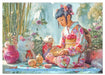 April: Japanerin isst im Beisein von Stofftieren