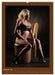 Blondes Haar und die Farbe Gold in einem harmonischen Spiel von Licht, Schatten und Farben. Den perfekten Körper eines blonden Models hat der Fotograf sinnlich und erotisch abgelichtet. Ein einfacher Bildaufbau mit einem goldenen Stuhl in Form eines Damenschuhs genügt für eine feine Bilderserie.