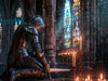 Ein Ritter kniet in voller Rüstung in einer gotischen Kathedrale, sein Schwert fest in den Händen. Kerzen erleuchten den Raum, während farbige Lichtstrahlen der Glasfenster eine sakrale Atmosphäre schaffen. Diese Szene vereint Andacht, Stärke und die Mystik mittelalterlicher Legenden. In fotorealistischem Stil mit modernster KI erschaffen, wirkt das Bild wie ein Blick in eine heilige Zeremonie voller Würde und Erhabenheit. Perfekt für Liebhaber von Rittern, Spiritualität und mittelalterlicher Kunst.