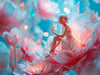 Eine bezaubernde Blumenfee sitzt auf einer leuchtenden Blüte, umgeben von sanft schwebenden Schmetterlingen in einem märchenhaften Blütenmeer. Ihre filigranen, durchscheinenden Flügel reflektieren das weiche Licht in zarten Rosa- und Blautönen. Die Komposition strahlt eine himmlische Leichtigkeit und verspielte Eleganz aus – wie ein Moment der Magie eingefangen zwischen Fantasie und Natur. Dieses Bild ist pure Poesie für die Wand und spricht Romantiker, Träumer und Feenfreunde gleichermaßen an. Das Motiv wurde durch die Magie der künstlichen Intelligenz und viel Fantasie erschaffen.