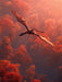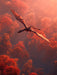 Majestätischer Drache im Flug über einem leuchtenden Herbstwald im Abendlicht