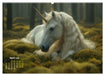 November: Herbstzauber: Das weißglänzende Einhorn auf moosigen Steinen