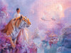 Erlebe ki-generierte Werke friedlicher, paradiesischer Szenen, in denen Mensch und Tier glücklich zusammenleben. Prächtige Vögel bevölkern die Welten, doch auch Pferd, Fuchs und Tiger sind Teil dieser verträumten Szenen. Die Pastellfarbpalette taucht alles in eine unwirkliche, malerische Atmosphäre. Perfekt für alle, die dem Träumerischen verfallen sind und Harmonie suchen.