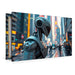 Erlebe die Zukunft in jedem Detail. Dieses hochwertige KI generierte Wandbild oder Puzzle zeigt einen humanoiden Roboter inmitten einer futuristischen Metropole. Eine Maschine steht regungslos auf der nassen Straße. Umgeben von Menschen und Neonlichtern scheint der Roboter dennoch allein, verloren in Gedanken, oder programmiert zur Beobachtung oder als Stadtnavigator. Die Szene fängt die faszinierende Spannung zwischen Mensch und Technologie ein. Fortschritt trifft auf Melancholie, Metall auf Emotion. Dieses Bild lädt zum Nachdenken ein, über die Rolle künstlicher Intelligenz in einer Welt, die sich ständig verändert.