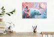 Tauche ein in sanfte Welten, in denen Mensch und Tier in Harmonie miteinander leben. Die Pastellfarben Rosa und Hellblau betonen Friedfertigkeit und die leicht surrealen Nuancen dieser mit Hilfe der KI erstellten Werke. Ideal für alle Fans zarter Fantasiewelten, die Ruhe, Vertrauen und eine friedvolle Verbindung zwischen Mensch und Tier suchen, die Herz und Fantasie berühren.