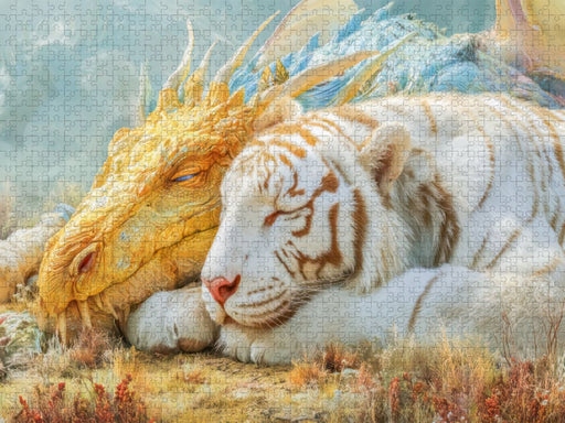 Drache und Tiger friedlich dösend Entdecken Sie verspielte, eindrucksvolle Drachenwerke und lassen Sie sich von der Magie der Drachen verzaubern. ...