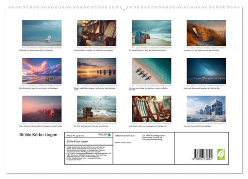 Zwischen Himmel und Meer sind Strandkörbe, Liegen und Stühle als stille Zeugen der Jahreszeiten. (Monatskalender, 14 Seiten) Es gibt Orte, die spr...