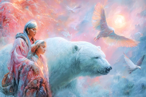 Wanderung mit dem Eisbären Tauche ein in sanfte Welten, in denen Mensch und Tier in Harmonie miteinander leben. Die Pastellfarben Rosa und Hellbla...