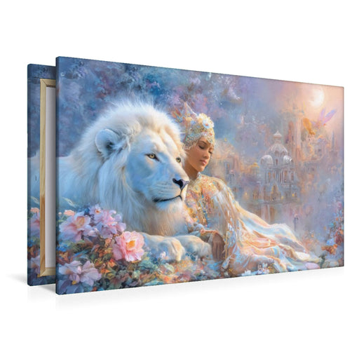 Ein weißer Löwe bei der Prinzessin Tauche ein in sanfte Welten, in denen Mensch und Tier in Harmonie miteinander leben. Die Pastellfarben Rosa und...