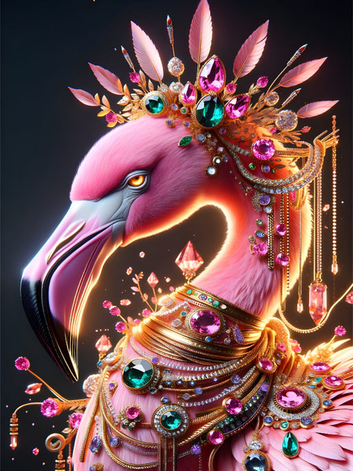 Ein florales Edelstein-Porträt des Flamingos als Symbol für Balance, Leichtigkeit und innere Schönheit Der Flamingo gleitet durch dein Feld wie ei...