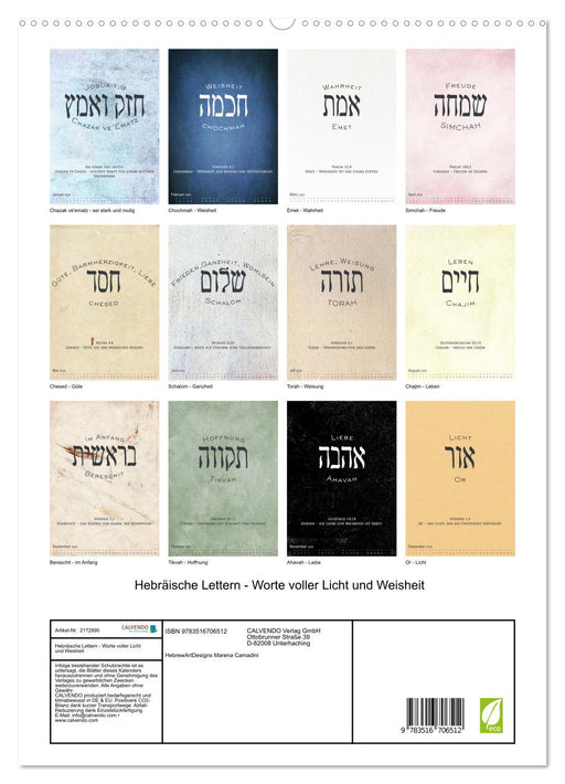 Vollständige Details anzeigenHebräische Lettern - Worte voller Licht und Weisheit (CALVENDO Premium Wandkalender 2026)