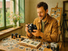 Dieses atmosphärische, mit künstlicher Intelligenz generierte Puzzle zeigt einen Mann, der inmitten alter Fotoabzüge, Filmrollen und seiner Kamera in Erinnerungen schwelgt. Ein nostalgisches Motiv für alle, die die Magie der analogen Fotografie lieben – detailreich, stimmungsvoll und perfekt zum Verweilen beim Puzzeln.