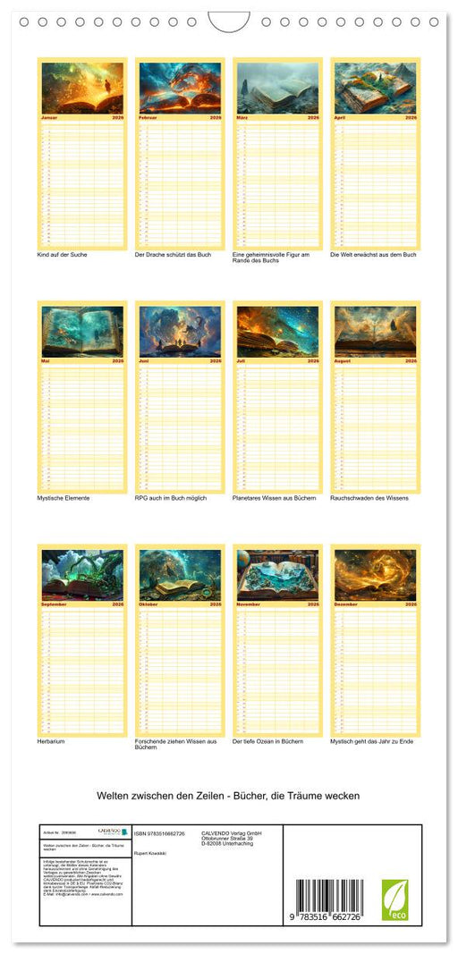 Vollständige Details anzeigenWelten zwischen den Zeilen - Bücher, die Träume wecken (CALVENDO Familienplaner 2026)