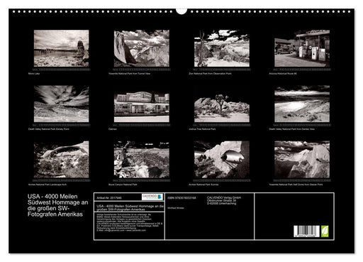 Vollständige Details anzeigenUSA - 4000 Meilen Südwest Hommage an die großen SW-Fotografen Amerikas (CALVENDO Wandkalender 2026)