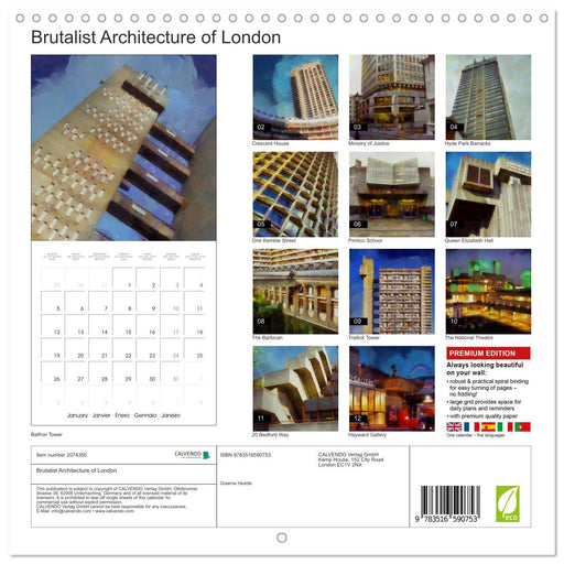 12 original paintings of London's brutalist buildings (Monthly calendar, 14 pages) Brutalist architecture isn't everyone's cup of tea, but for tho...