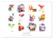 Handgemalte Aquarell Illustrationen von Cocktails mit Rezepten zum Selbermixen.
