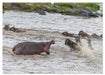 Juli: Juli: Ziemlich gereizt droht das Hippo den flüchtenden Gnus.