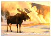 Februar: Im goldenen Morgenlicht des Yellowstone erhebt sich der mächtige Elch aus der winterlichen Stille