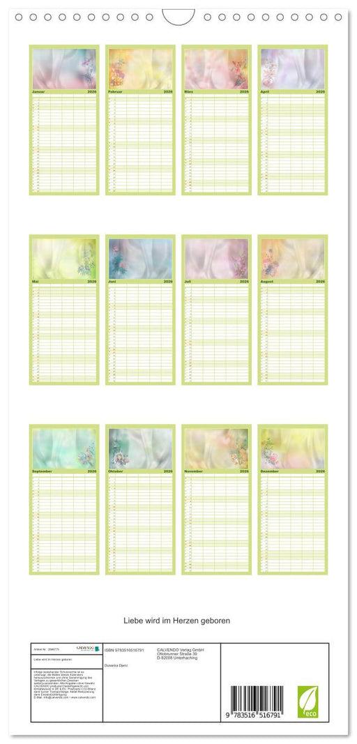 Vollständige Details anzeigenLiebe wird im Herzen geboren (CALVENDO Familienplaner 2026)